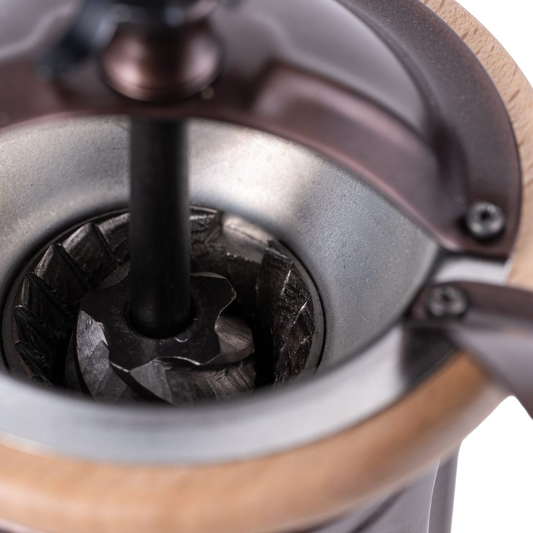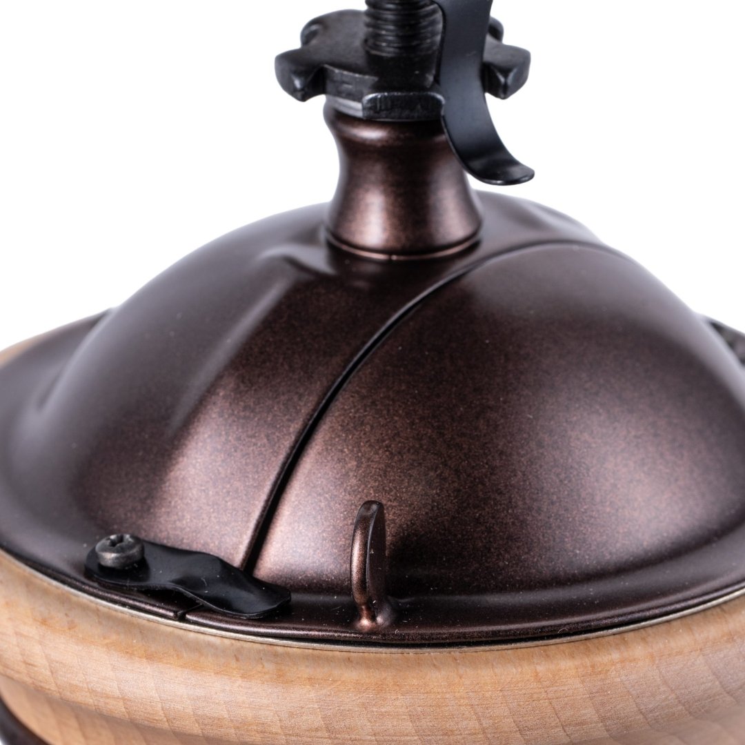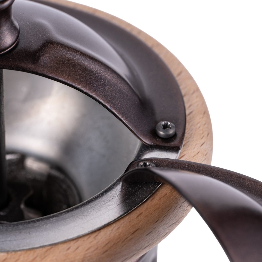 Un moulin manuel élégant au style classique, conçu en bois de hêtre séché et en tôle. Il intègre le mécanisme conique exclusif Tre Spade, réputé depuis plus d’un siècle pour la qualité et la régularité de sa mouture. Le réglage de la finesse est simple et précis, ce qui permet d’adapter facilement votre extraction. Avec une trémie de 30 g et un tiroir de 70 g, il offre la quantité idéale pour un café fraîchement moulu. La finition brune donne un aspect chaleureux et intemporel.